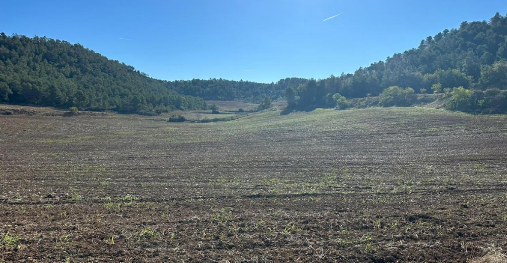 (EN) Planned tracking fields are dirt (loose earth) with small/young plants.